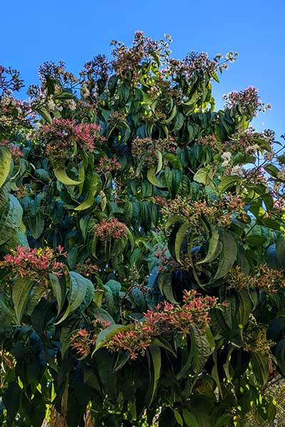 Characteristics: Just one species, Heptacodium micoinoides exists. Honeysuckle-scented white flowers bloom in late summer to early fall. Purplish-red fruit follows, covered by sepals that change from green to bright pink and add ornamental appeal.